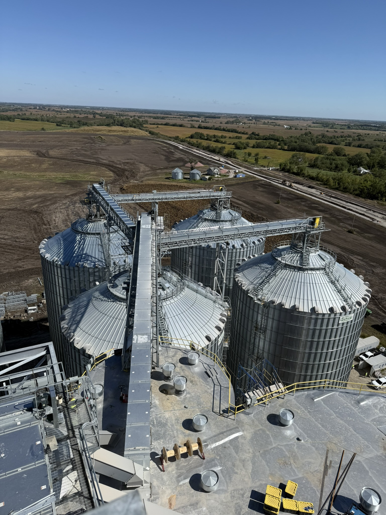A ½" antistatic UHMW bottom liner and tongue-and-groove floating liner attachment promote smooth belt movement, reduced friction, and minimized static—key advantages for reliable grain conveying. The conveyor’s 5' spaced conical idlers, spherical roller bearings, and 1¼" stub shaft idler connection support consistent belt tracking and efficient grain transfer across the system.